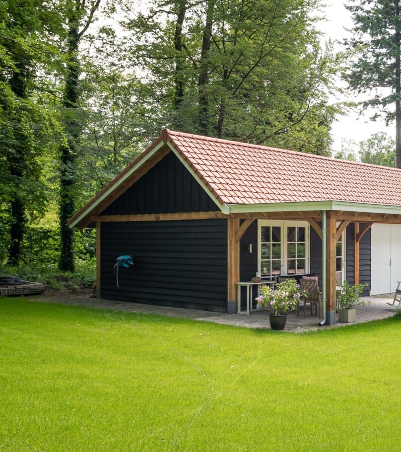 Garage met tuinkamer en overkapping