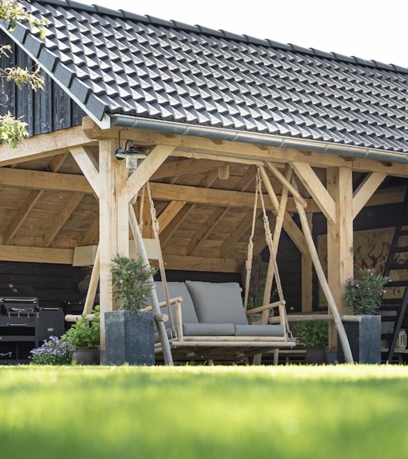 Maak een afspraakMaak kennis met onze mooie kapschuur met veranda. Deze veranda is opgebouwd uit een eiken constructie. De sporenkap geeft deze veranda een prachtige uitstraling, ook kun je door middel van een ladder bij de zolder komen. De lage achterwand geeft de kapschuur een vriendelijk aanzicht aan de kopse zijde.